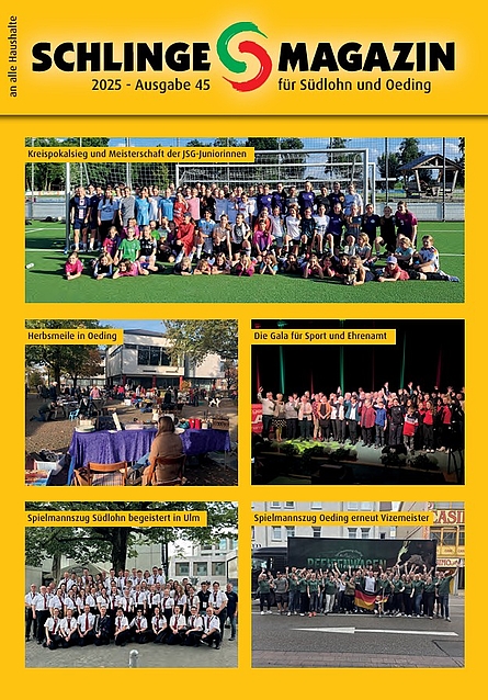 Der Redaktions- und Anzeigenschluss für die nächste Ausgabe ist der 13. November 2025. Ihre Texte und hochauflösenden Bilddaten können Sie uns bequem an schlingemagazin@oing.de senden.