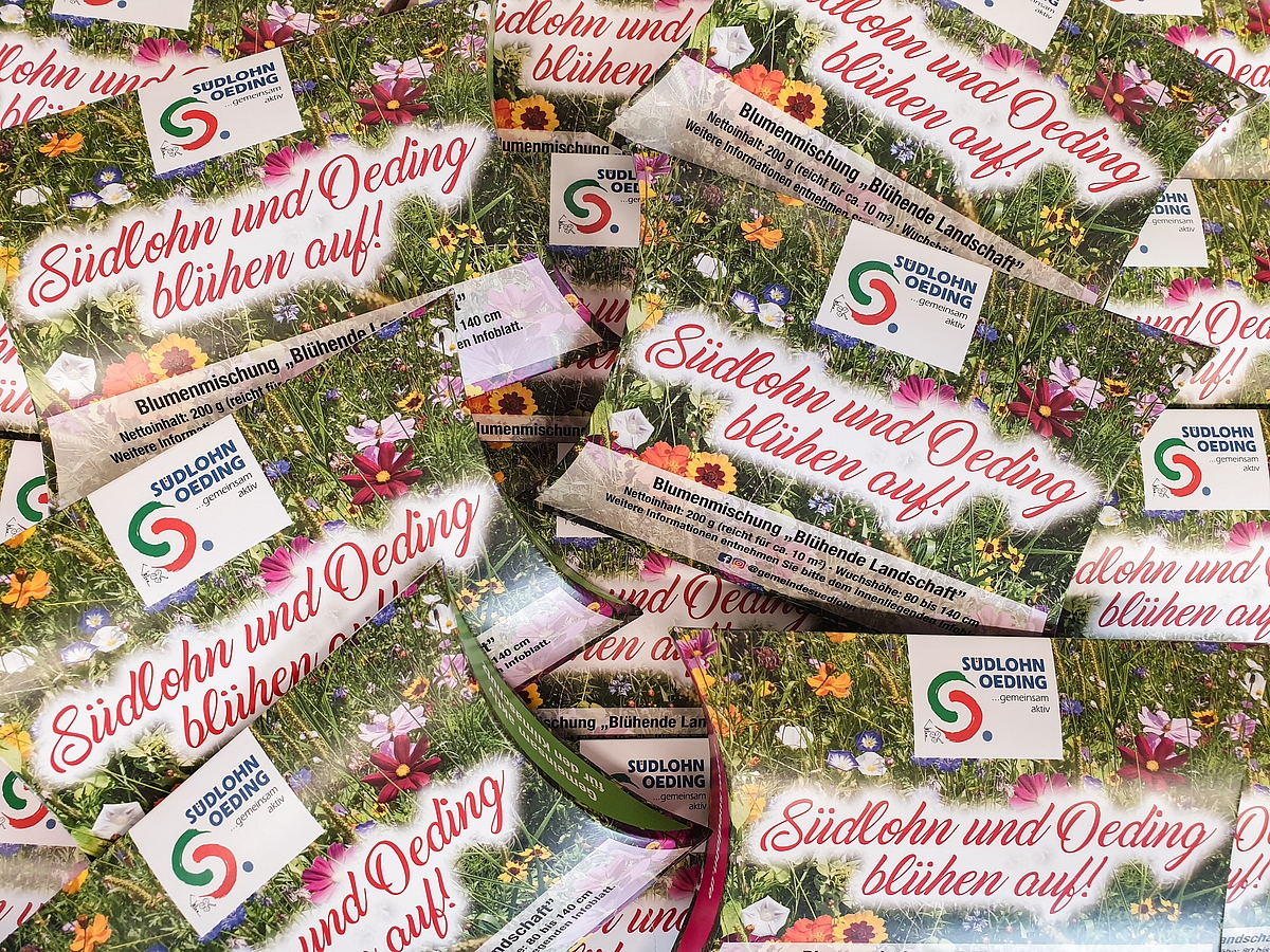 Jährlich ab März bietet die Gemeinde Südlohn allen Bürgerinnen und Bürgern kostenloses Saatgut zur Förderung der Artenvielfalt an. Die Samen sind ideal für die Aussaat in Ihrem Garten oder Vorgarten und können für das Anlegen von Blühflächen genutzt werden.