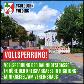 Vollsperrung der Bahnhofstraße in Höhe der Kreisparkasse in Richtung Minikreisel/Am Vereinshaus