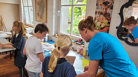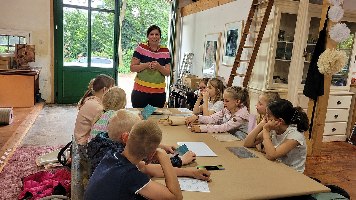 Die Klasse 4b besuchte in der letzten Woche für ein Druckprojekt den Hof Schlüter in Südlohn.