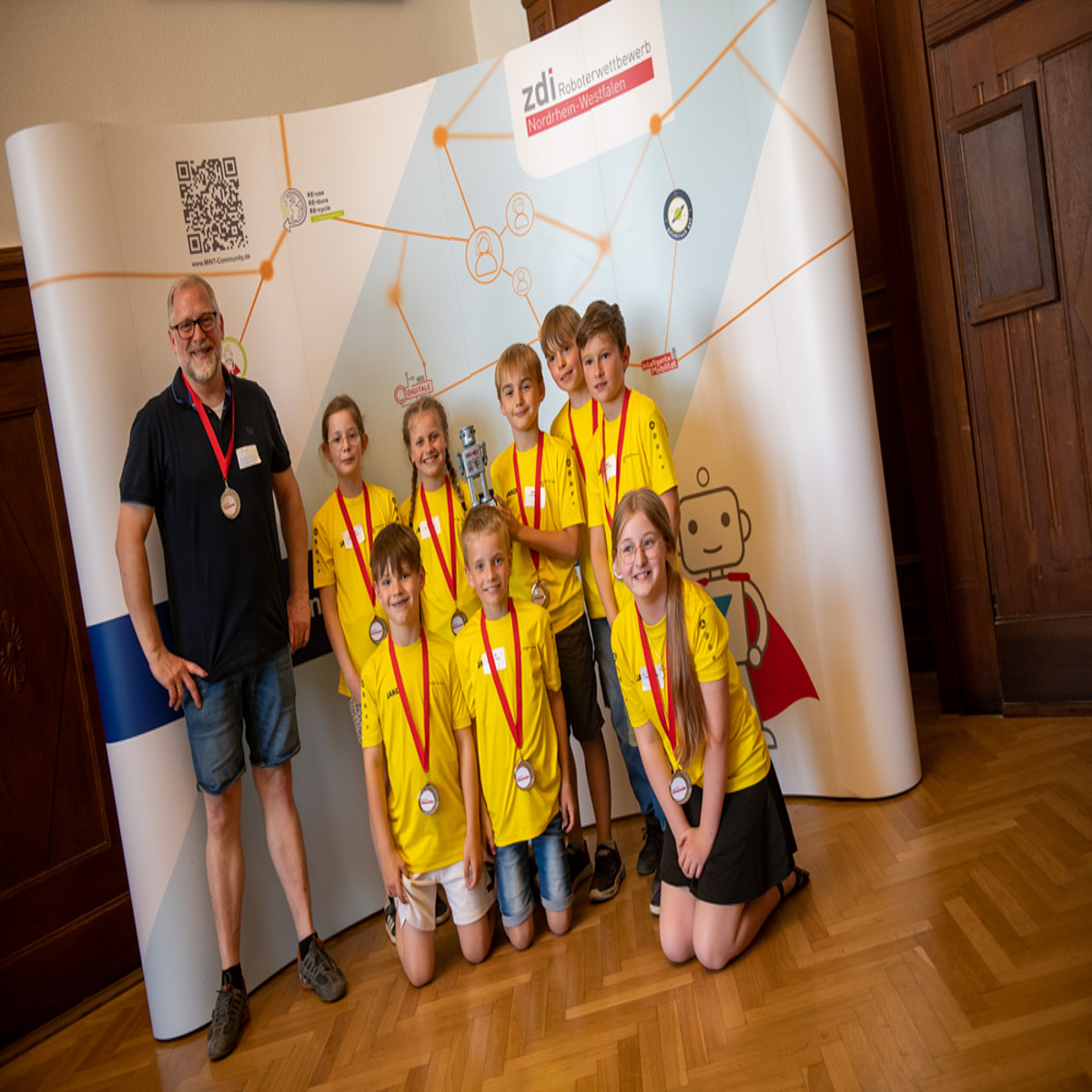 Großer Jubel im Rathaus Recklinghausen am vergangenen Samstag, den 14.06.2025: Das Robotik-Team „von Galen Gang“ der von-Galen-Schule Oeding hat sich erfolgreich für das Landesfinale des ZDI-Robotikwettbewerbs 2025 qualifiziert. Unter dem diesjährigen Motto „Future Food – Die Zukunft isst mit“ bewältigten die jungen Tüftlerinnen und Tüftler spannende Aufgaben rund um die Ernährung von morgen – mit selbst programmierten LEGO-Robotern, viel Teamgeist und Begeisterung.