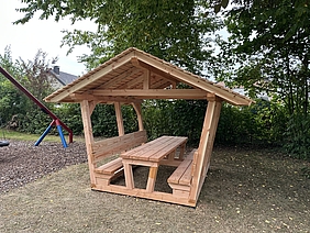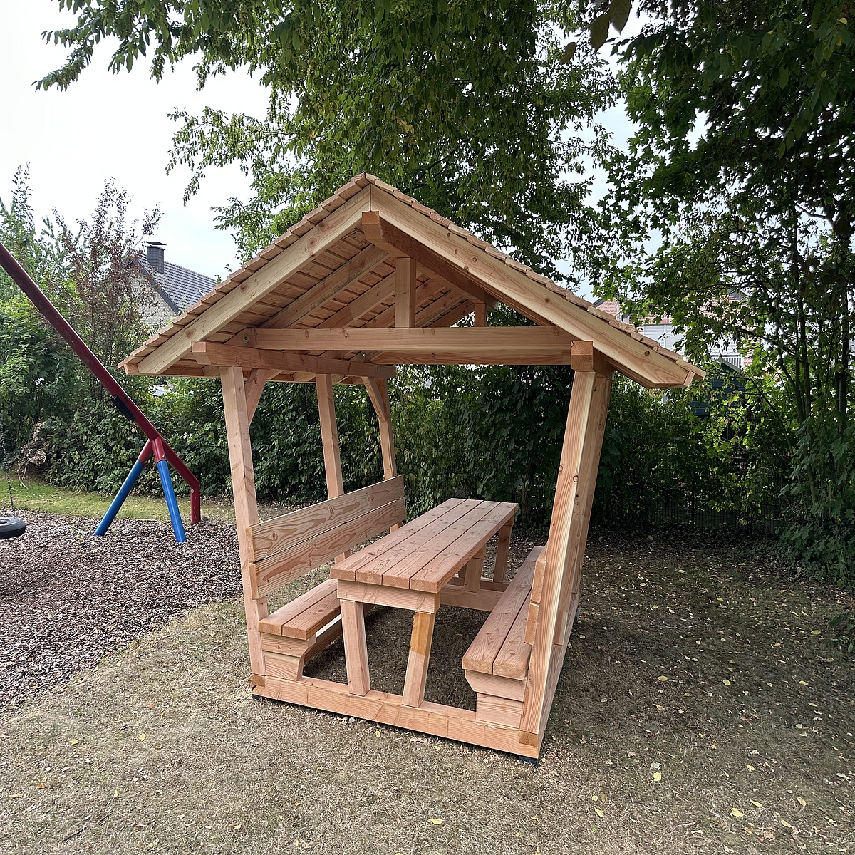 Neue überdachte Sitzgruppe am Spielplatz an der Buchenallee in Oeding