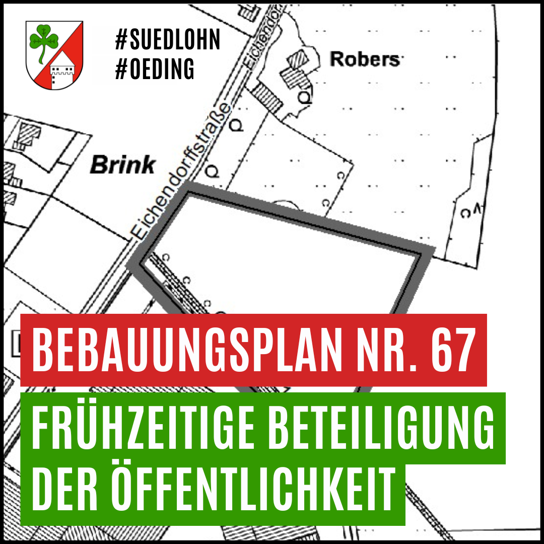 Gem. § 3 Abs. 1 BauGB ist die Öffentlichkeit möglichst frühzeitig über die allgemeinen Ziele der Planung zu informieren. Anregungen können bis zum 22.04.2026 (einschl.) postalisch, per Mail an bauleitplanung@suedlohn.de oder direkt im Rathaus vorgebracht werden. Diese werden dann in die weitere Planung eingestellt.